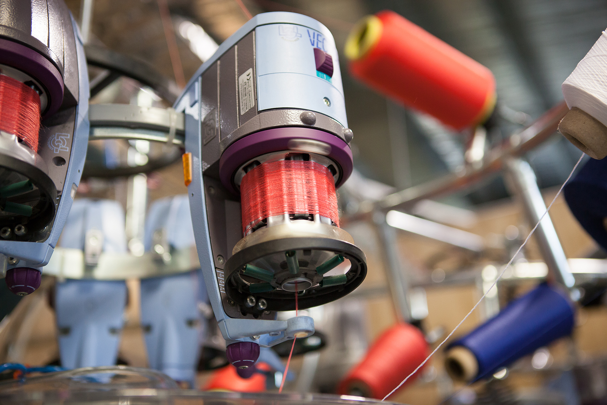 Special elastic feeders are attached separately to the machine to allow for the adjustment of the tensions in the elastics within the structure of the socks to provide the support and fit needed.