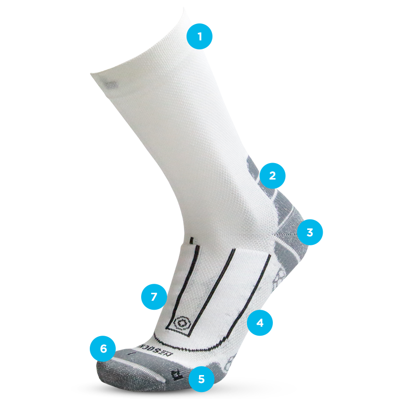 Featuring Coolmax™ yarn technology to wick away heat and moisture during wear ensuring a comfortable wearing experience that is beneficial to your skin and foot health. Our Elastic Support System™ ensures customized fit with no bunching or ride down of the sock during wear combined with seamless knit for optimal abrasion free comfort and shaped loop pile cushioning for impact protection.