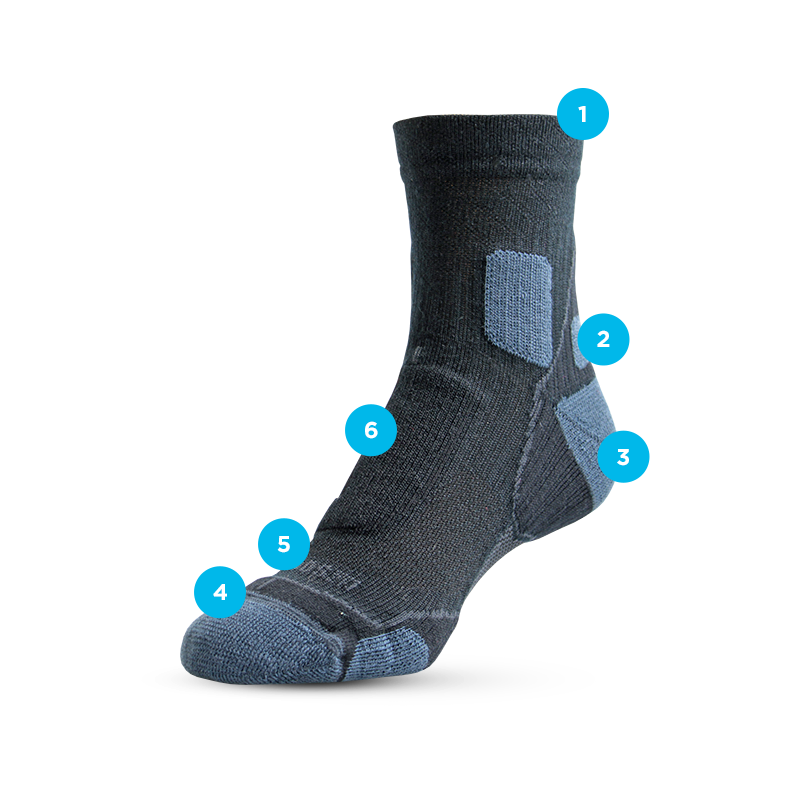 Performance Quarter is specifically designed for running, biking, fitness and other adventure based sports. Our Elastic Support System ™ ensures customised fit with no bunching or ride down of the sock. Merino Wool offers moisture management, odour control and softness. We knit the Merino Wool on the inside so you get the full benefit of this natural fibre against your skin. Guaranteed comfort and protection all day long.