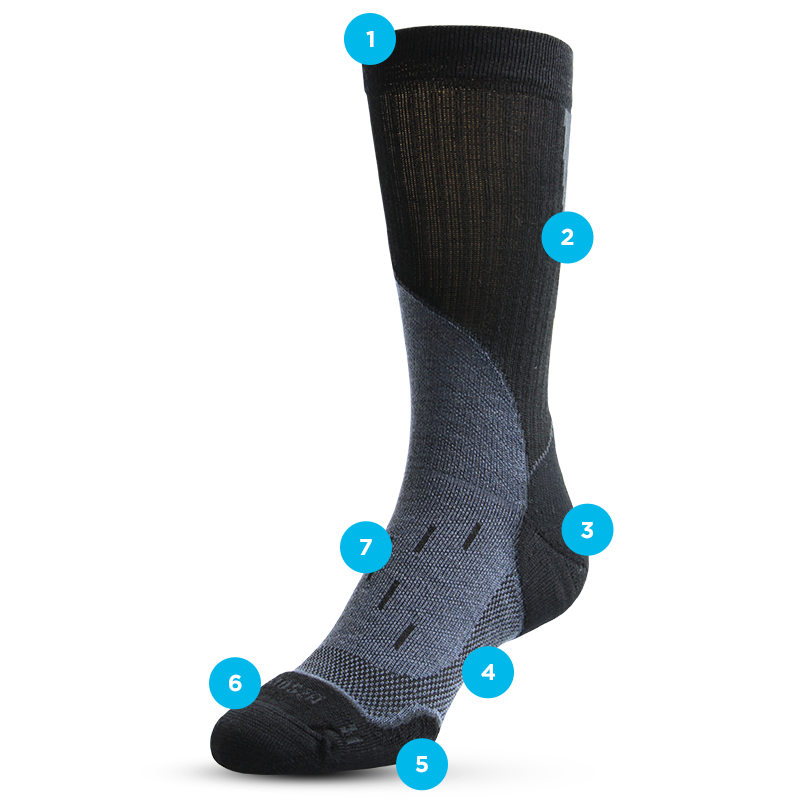 7. Elastic Support System™ throughout the sock for support and to lock the sock in place during wear.