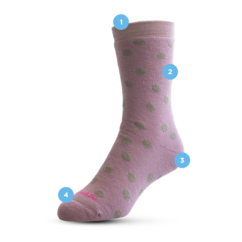 A fully cushioned Merino sock for those cozy winter nights. Knitted entirely in loop pile cushioning, these super snuggly Merino numbers are sure to warm up even the coldest of toes, making them ideal for moments we need a little extra comfort. Patterned in a darling little spot, these understated beauties are sure to become favorites as the weather cools down this season.